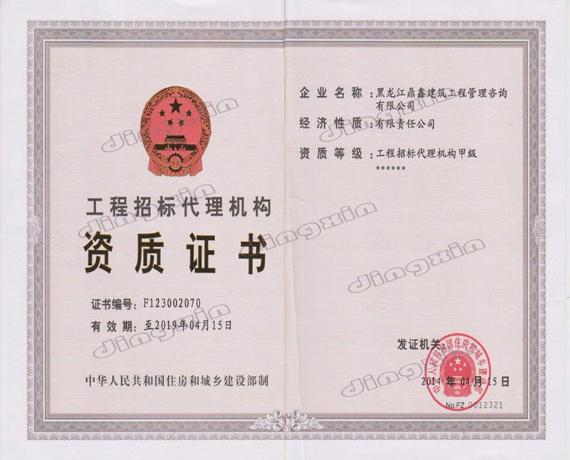 黑龍江鼎鑫建筑工程管理咨詢(xún)有限公司成立于2005年,注冊(cè)資金400萬(wàn)元。具備中華人民共和國(guó)住房和城鄉(xiāng)建設(shè)部批準(zhǔn)的工程招標(biāo)代理機(jī)構(gòu)資格、中華人民共和國(guó)財(cái)政部批準(zhǔn)的政府采購(gòu)招標(biāo)代理機(jī)構(gòu)資格、黑龍江省商務(wù)廳批準(zhǔn)的機(jī)電產(chǎn)品國(guó)際招標(biāo)代理機(jī)構(gòu)資格、中華人民共和國(guó)住房和城鄉(xiāng)建設(shè)部批準(zhǔn)的工程造價(jià)咨詢(xún)甲級(jí)資質(zhì)、黑龍江省住房和城鄉(xiāng)建設(shè)廳批準(zhǔn)的房屋建筑工程監(jiān)理乙級(jí)(市政公用工程監(jiān)理乙級(jí)資質(zhì))。主要從事建設(shè)工程及政府采購(gòu)招標(biāo)、造價(jià)咨詢(xún)、工程監(jiān)理、項(xiàng)目管理等業(yè)務(wù)。